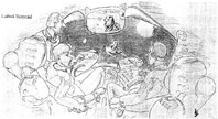 dní po odletu. Z deníku kapitána.Bydlím teď v řídící kabině. U mě jsou nastěhovaní lachtani. Robertsová se byla zase koupat ve skladišti v krajkovém prádélku. Ve středové chodbě jsem potkal karavanu velbloudů. Přepadli je piráti. Nejdřív vyhrávali 10:3, ale nakonec to byla plichta. S jejich kapitánem jsem si začal tykat. Jmenuje se Flint, ale já mu říkám familiárně Jessie. Je to hrozně hodnej a inteligentní kluk, ale žárlím na něj, prtože se s Robertsovou procházel po vyhlídkové chodbě. Měla na sobě jen kožich z ledního medvěda. Jinak je vše při starým. K obědu jsou i nadále fazole a Li-Weng je stále nezvěstný. 1813 dní po odletu. Kapitánův deníček. Dnes jsem obvědval s Flintem a jeho chlapci. Měli jsme fazole se zelím a všem to moc chutnalo. Delikatesa. Až uvidím Li-Wenga, musím mu pochválit, že tak vaří, ale je pořád nezvěstný. Při obědě nás přepadli muži z posádky a unesli Stounovou. Když jsme je pronásledovali, schovali se do skladiště vel-bloudů. Li-Weng se objevil a řekl mi, že k večeři bude lachtaní maso. Na hlavní chodbě jsem potkal kara-vanu ledních medvědů. Přístroje jsou v pořádku a tak jsem změřil hloubku vesmíru. Je to přesně 0,975 m. P.S.: Robertsová si šla zase zaplavat. Měla na sobě bílý bikinky. 1815 dní po odletu. Z deníčku kapitána. Coural jsem se po lodi a uslyšel ze skladiště strašlivý křik. Jat hrůzou jsem vpadl dovnitř. Hrálo se tam hokejové utkání, posádka versus piráti. V přestávce se tam šla koupat Robertsová se Stounovou. Obě bez plavek. Ti, kteří to přežili, jsou na ošetřovně. Ostatní jsme dali do beden ve skladišti. Zima je tam dost velká. Sedím s kapitánem Flintem v řídící kabině, popíjíme jamajskej rum, kterej jsme našli v bednách ve skladišti. Jessie mě naučil několik hezkejch písniček a tak si teď spolu zpíváme a měříme hloubku vesmíru. Zlepšuje se to, už má jen 0,95 m! Li-Weng nám naservíroval Stounovou se zelím. Měla trochu tuhé maso, ale dalo se to jíst. Ještě si rozmyslím, jestli ho dám na hlášení. Robertsová šla ošetřit zbytek mužů. Nepřežil to tentokrát už nikdo a tak je tu s náma a tančí závojový tanec. Ve skladišti hrajou medvědi s velbloudama hokej. Na ukazateli bylo po dvou třetinách skóre 120:3. Chvilku jsem se díval, ale hráli to mizerně. Než jsem se vrátil, Stounová znásilnila Flinta. Robertsová mu dávala umělé dýchání z úst do huby. Musel jsem ho taky dát k ledu. Škoda, byl to takovej fešněj kluk! Stounová a Robertsová šly laškovat s ledníma medvědama a já měřil hloubku vesmíru. Už to bylo jen 0,92 m. Li-Weng slíbil, že k obědu budou velbloudí stejky se zelím. Už se těším! Později. Na chodbě se cicmal hlavní computer s vysílačkou a vůbec jim nevadilo, že kolem prochází kara-vana ovládacích pultů. Asi je dám do hlášení! Li-Weng se vrátil a ptal se mě, jestli bych nechtěl raději medvědí tlapy. Zároveň přišla i Robertsová se Stounovou a sdělily mi, že medvědy musely dát k ledu. Všechny do jednoho! Li-Weng se zabarikádoval v kuchyni, bazén obsadili velbloudi a koupou se v šam-paňském. Vím, že teď jsem na řadě já. zatím měřím hloubku vesmíru. Má 0,9 a tak je všechno v pořádku. | ||